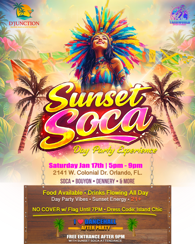 Sunset Soca is Orlando’s premier Caribbean day party, bringing the heat early with nonstop island energy, vibrant vibes, and a crowd that comes to move.